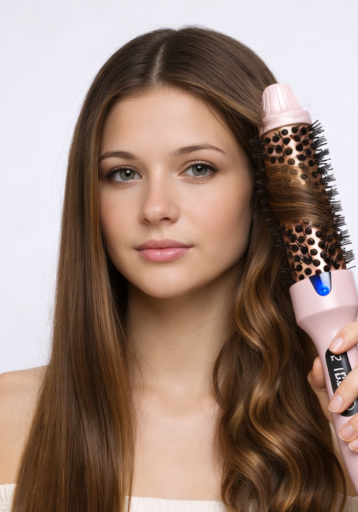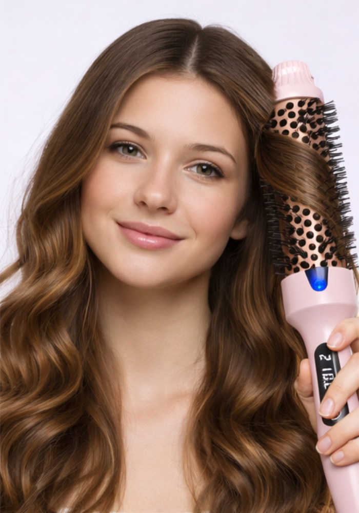 It works as 3 tools in one: a thermal brush, curling iron, and straightener. Its heated bristles allow you to wrap hair around the barrel to create curls, voluminous waves, or smooth straight styles.